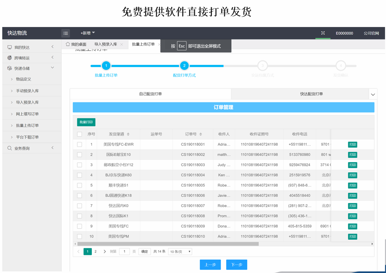 快達物流具有國際快遞運營資質,可以直接對接客戶信息系統,全程跟蹤貨物流向,直接獲取一站式國際面單,快達網站與國外派送公司網站實時同步,及時準確跟蹤貨物。同時與快遞100和17Track對接,客戶可以在全球查詢貨物信息。快達可以提供客戶打單系統直接打印面單。